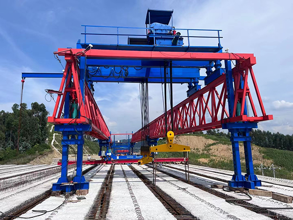 [作者:admin 发布日期:2024-04-24 浏览量:2527]架桥机就是将预制好的梁片放置到预制好的桥墩上去的设备。架桥机属于起重机范畴,因为其主要功能是将梁片提起,然后运送到位置后放下。但其与一般意义上的起重机有很大的不同。其要求的条件苛刻,并且存在梁片上走行,或者叫纵移。架桥机分为架设公路桥,常规铁路桥,客专铁路桥等几种。