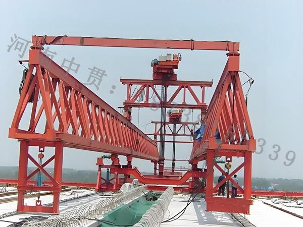 支腿支撑管控:前支腿需精准落在桥墩顶部的预埋支座上,后支腿支撑在已架梁体时,需避开梁体接缝位置,必要时增设临时加固装置;支腿锁定需 “双保险”—— 液压锁 + 机械锁同步锁死,防止液压系统失效导致沉降。